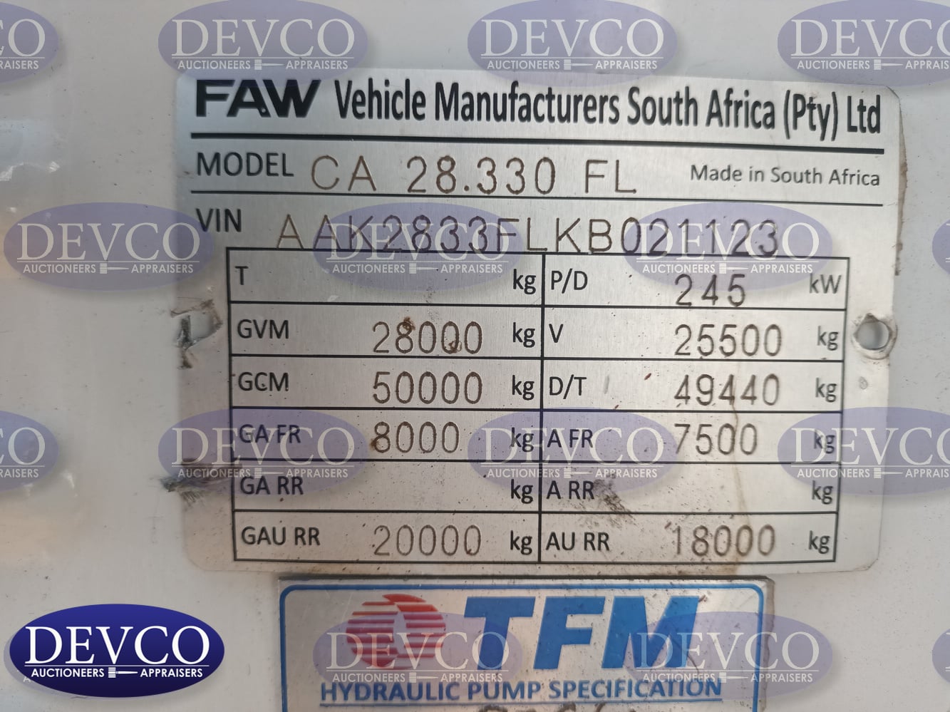 - Vin No.: AAK2833FLKB021123