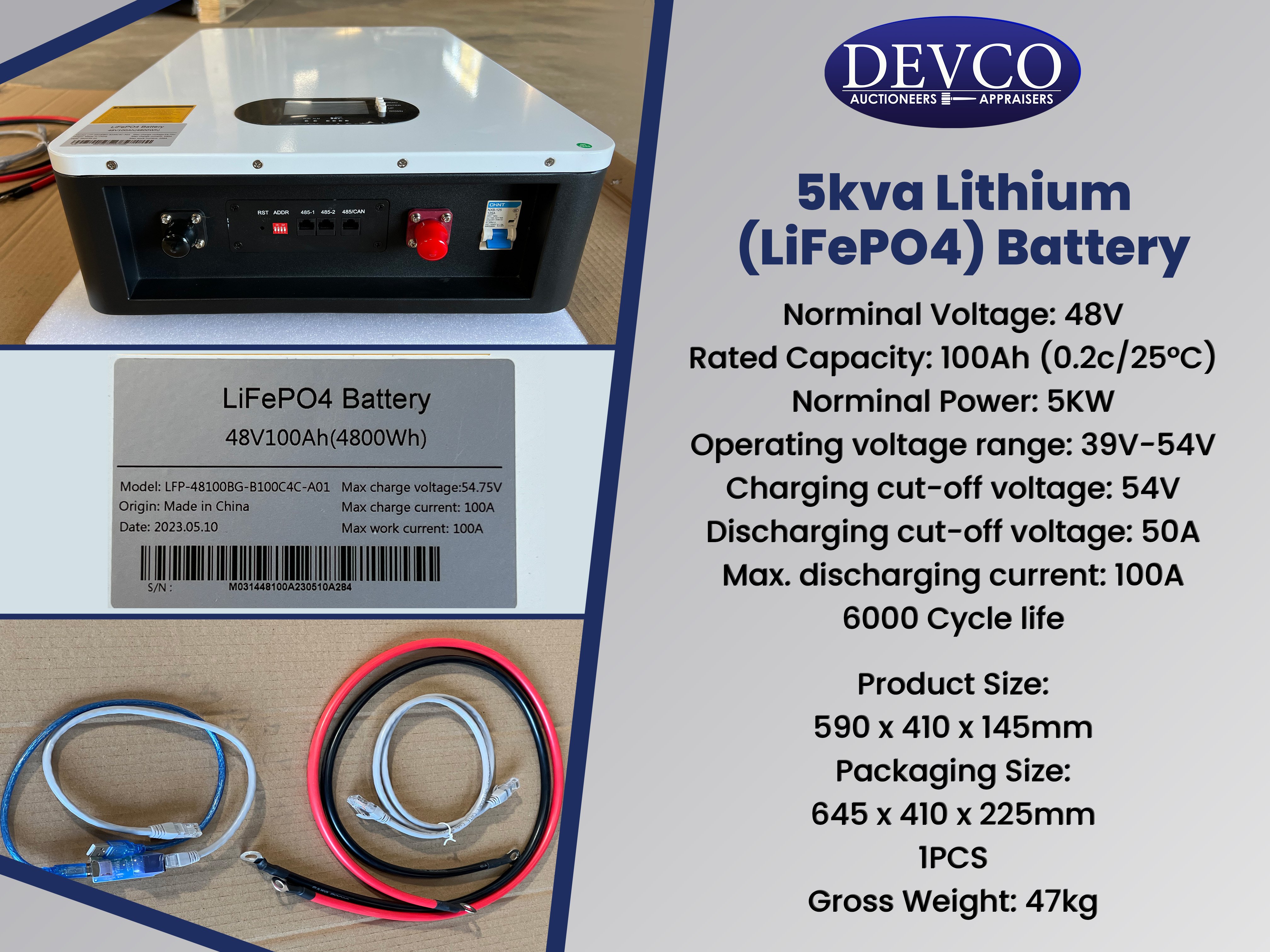 5Kva (48V) Lithium (LiFeP04) Wall Mounted Battery