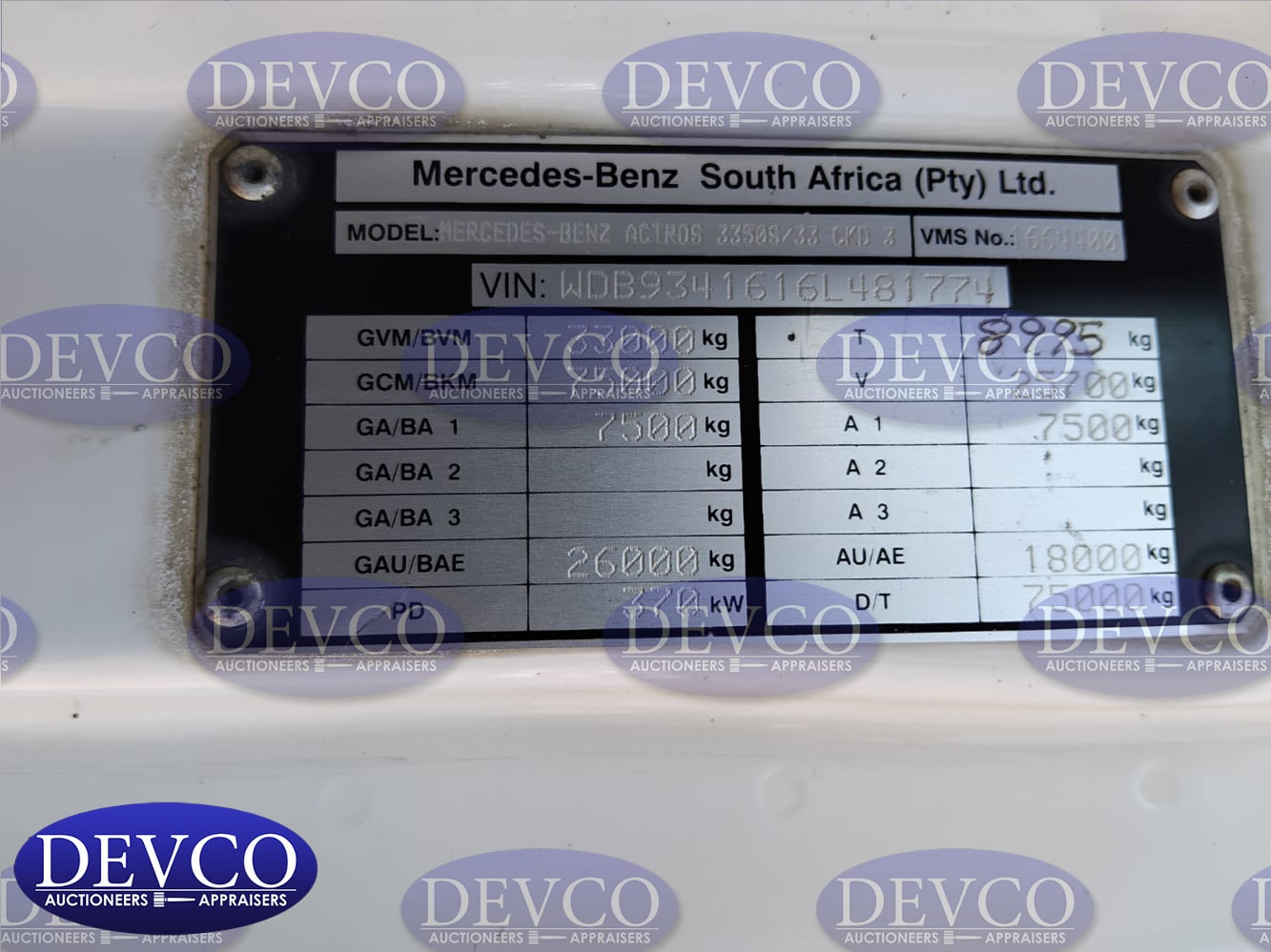 - Vin No.: WDB9341616L481774
