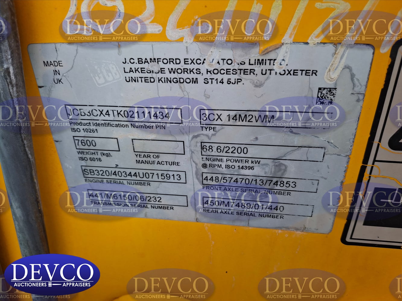 - Vin No.: JCB3CX4TK02111434